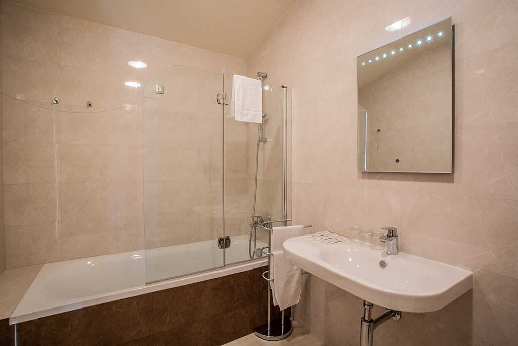 Harmonious in every way, this superior triple Sea view room of 25 m2 combines the exceptional convenience of the location with the elegance of modern interiors permeated with light pouring in from the private balcony overlooking the endless blue of the Adriatic Sea. This room can accommodate up to three adults. All our rooms are reachable by the elevator, airconditioned and have free Wi-Fi. Parking is available on-site.